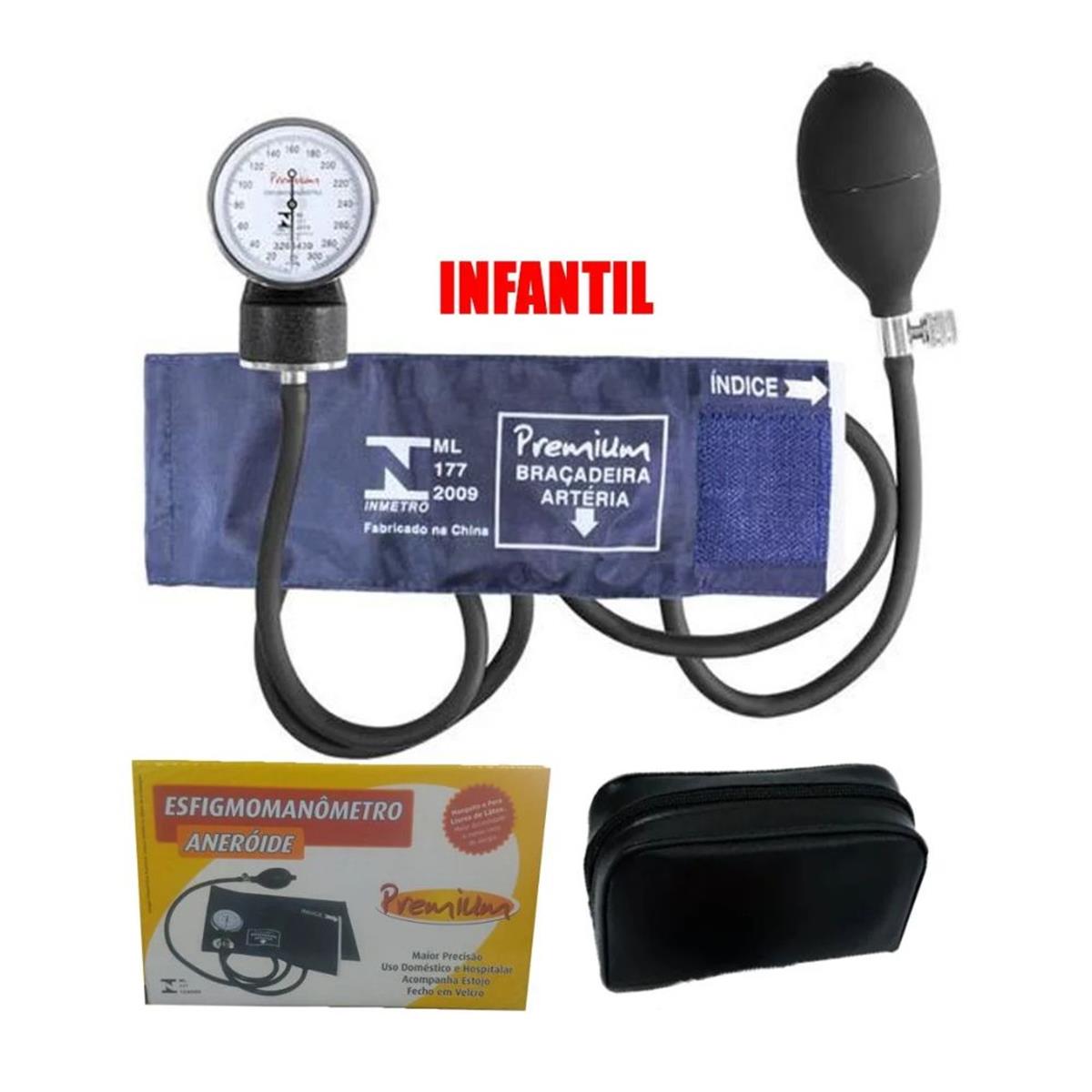 Esfigmomanômetro infantil, braçadeira confeccionada em material antialérgico em tecido algodão, circ. de braço recomendada: 10-18 cm com fecho em velcro;