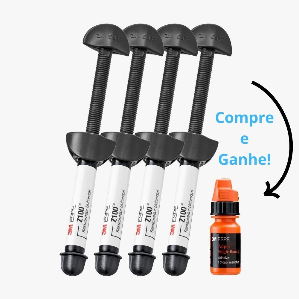 Kit com 4 seringas da Resina Z100™ de 4g nas cores A1, A2, A3 e A3.5 (sendo 1 de cada) e 1 frasco de 6g do Adesivo Adper Single Bond 2.