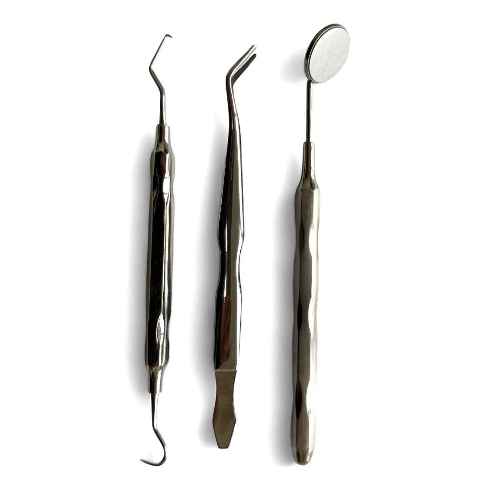 Kit clínico contendo 1 Pinça, 1 Sonda exploradora e 1 espelho “front surface” com cabo.