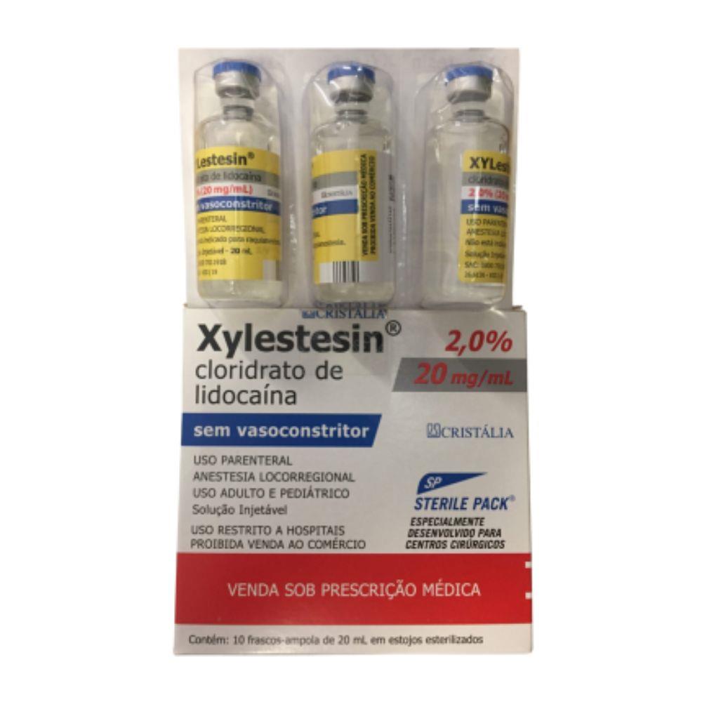 Solução injetável sem vasoconstritor 2% – caixa com 10 frascos-ampola de 20 mL em estojos esterilizados.