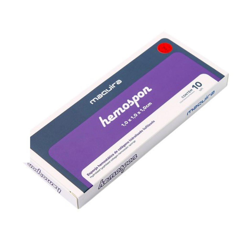 Esponja Hemostática Hemospon - Maquira A Esponja Hemostática Hemospon da Maquira é uma esponja produzida com colágeno (gelatina) porcino liofilizado. Indicada para uso durante os procedimentos cirúrgicos odontológicos, como: Extração dental convencional, Remoção de dentes inclusos ou impactados, Remoção de cistos e tumores, Biópsias. Detalhes do Produto: Obtenção de hemostasia local, principalmente quando o controle do sangramento por ligadura ou procedimentos convencionais é impraticável ou ineficaz. Grande poder hemostático e cicatrizante, seu uso substituí o algodão e acelera o processo de cicatrização para prevenir complicações pós-operatórias. Registro ANVISA: 80322400100.