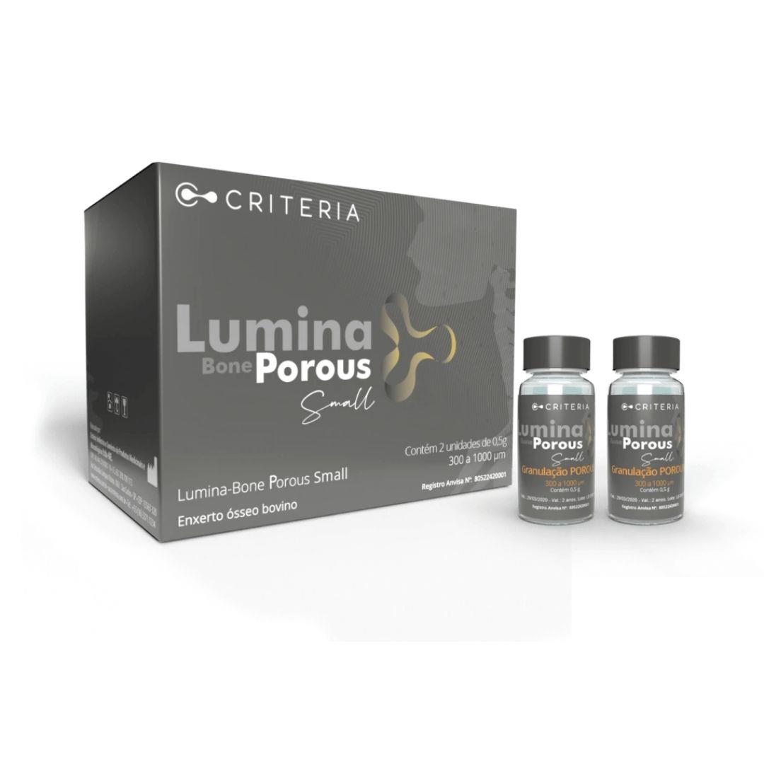 LUMINA-BONE POROUS SMALL é um enxerto ósseo medular de alta porosidade, principalmente indicado para pequenas reconstruções em procedimentos cirúrgicos que necessitam reparos e ganho de volume, possui macroporos e grânulos entre 300 a 1000µm, rápida absorção entre 4 a 6 meses.