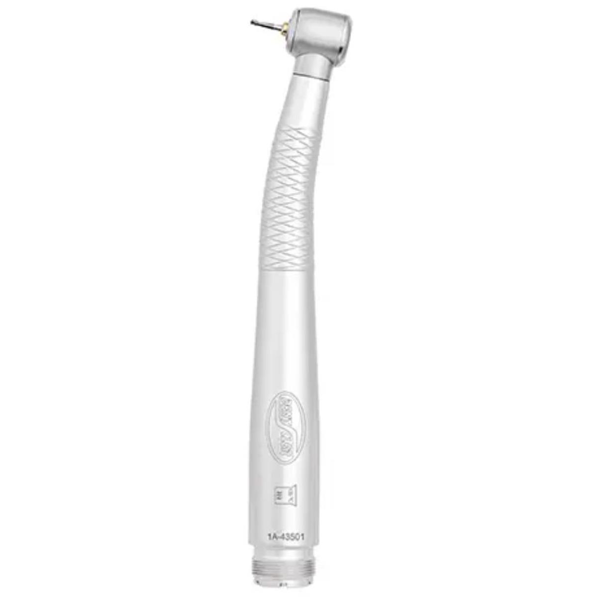 Spray: triplo, rotação: 0 a 420.000 RPM, cabeça: mediana, extra torque, material: alumínio anodizado, rolamentos: cerâmica, conexão: Borden (2 furos), remoção de brocas: através de saca brocas, peça de mão autoclavável.