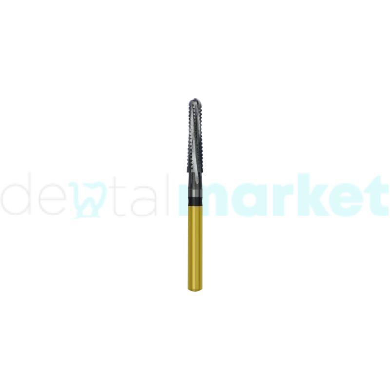 Broca Multilaminada 6 Lâminas Alta Rotação Preparo M10.314.018G Fabricação Alemã, com a garantia do melhor tratamento em Carboneto de Tungstênio em nível mundial. Excelência ao juntar haste e ponta ativa, diminuindo consideravelmente as probabilidades de fraturas recoces. Inoxidável e ultra resistente. Tarja Vermelha: 12 Lâminas. Acabamento ou refinamento fino de Preparos, resinas, metais e remoção de resinas ortodônticas. Tarja Amarela: 24 Lâminas. Acabamento ou refinamento ultra – fino de Preparos, resinas, metais e remoção de resinas ortodônticas. Para Canetas Redutoras e Multiplicadoras DOUBLE SIDE Tarja Vermelha/Roxa: 12 Lâminas. Acabamento/refinamento fino e ultra-fino de Preparos,resinas, metais e remoção de resinas ortodônticas em uma mesma broca. Graças ao seu potencial de preparo BIDIRECIONAL. Direção de rotação convencional: Acabamento fino. Direção de rotação inversa: Acabamento ultra – fino. DOUBLE SPEED Tarja Vermelha/Amarela: 12 Lâminas. Acabamento/refinamento fino/retentivo de Preparos,resinas, metais em uma mesma broca. Graças ao seu potencial de preparo em: Em alta rotação: Acabamento fino, deixando o preparo liso para moldagem. Em baixa rotação: Acabamento retentivo. Indicada na fase de cimentação, possibilitando assim o uso da mesma broca utilizada para moldagem, para que sejam preservadas as características iniciais do preparo. CORTE GROSSO Tarja Preta 12 Lâminas serrilhadas, para preparos em metal e esmalte. Substitui a ponta diamantada. Alto poder de corte e baixo aquecimento. Menor tempo clínico.