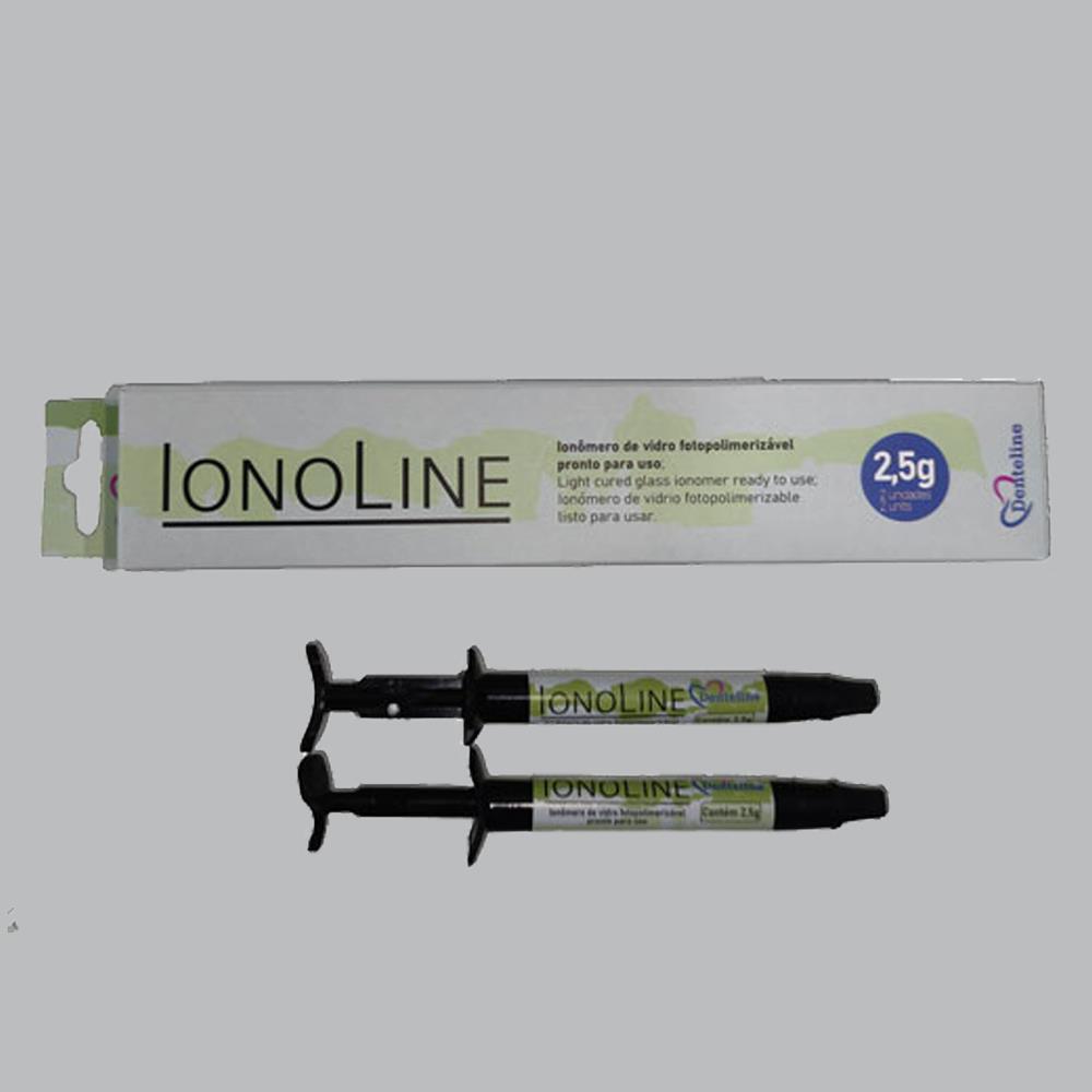 Contém 1 seringa de 2,5g de ionômero de vidro fotopolimerizável pronto para uso.
