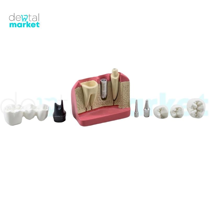Macro Modelo Núcleo - Nacional Ossos Este MACRO MODELO fabricado pela Nacional Ossos é um Kit de explicação da diferença de PONTE FIXA E IMPLANTE. Demonstra o caso clínico clássico de um paciente que perdeu um dente e explica, didaticamente, duas opções de tratamento: - Colocação de uma ponte-fixa adesiva - Preparo (desgaste) dos dentes saudáveis, ficando com três cargas em duas raízes, a dificuldade de higienização (escovação e fio dental), espaço intergengival e grande possibilidade de perda futura dos dentes envolvidos. - Colocação de um implante unitário Cone Morse, mantendo os dois dentes laterais sadios, sem preparo e desgaste, fazendo melhor a distribuição de carga, a higienização, passagem de fio dental e escovação. É um excelente produto de demonstração e venda do tratamento para o paciente de forma didática, obtendo um aumento expressivo do fechamento de orçamento em tratamento. Procedimentos Indicados: - colocação de prótese fixa - colocação de implante Composição: - Base com raiz e implante (cone Morse) - Prótese fixa adesiva - Prótese unitária - Coroa dos dentes - Simulação de núcleo metálico - Componente protético - Chave do componente protético