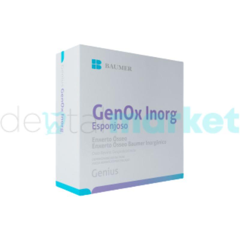 Enxerto Genox Inorg 0,5cc Aplicado procedimentos de Implantodontia, periodontia, bucomaxilo e cirurgias ósseas, tais como: - Preenchimento de alvéolos sem a manutenção da arquitetura alveo lar com a perda de até duas paredes; - Defeitos intra-ósseos, ancoragem em implantes imediatos, e tratamentos cirúrgicos periimplantes; - Lesões ósseas periodontais e cirurgias parendodônticas; - Recobrimento de espiras expostas. Detalhes: - Matriz inorgânica de osso bovino medular esponjoso, apresentando estrutura similar ao osso natural - Hidroxiapatita natural de alta pureza; - Substituto ósseo com reabsorção mais lenta. Por outro lado permite a reconstrução de paredes ósseas, principalmente vestibulares (necessidade estética) com a manute nção do volume ósseo e da arquitetura alveolar; - Tempo estimado de reparação entre 07 e 09 meses (lenta absorção) ; - Deve ser utilizado em locais que possuem três paredes ósseas , permitindo suporte físico ao material.