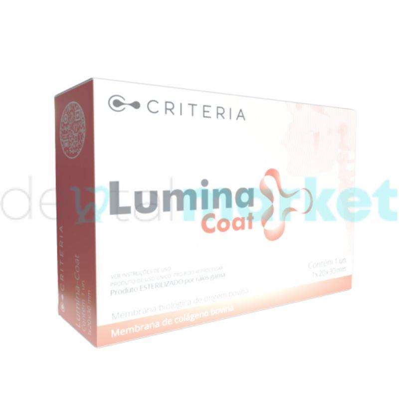 Membrana Lumina Coat É uma membrana orgânica natural derivada da estrutura óssea bovina desmineralizada, composta basicamente por colágeno tipo I, biocompatível e estéril para uso em medicina e odontologia, cujo propósito de aplicação clínica é servir como barreira (membrana) em cirurgias de enxertia óssea ortopédica e/ou odontológica nas quais são exigidas regenerações teciduais provenientes de anomalias e/ou perdas de tecidos ósseos e/ou conjuntivo. Permite a troca de fluídos e absorção pelo organismo, contribuindo também para a proteção do novo tecido ósseo, formado em sítios enxertados. Para um melhor aproveitamento da funcionalidade do produto LUMINA-COAT recomenda-se a utilização da linha de enxertos ósseos LUMINA-BONE - Critéria. O processo de obtenção do LUMINA-COAT garante a preservação das características de um colágeno desnaturado e extracelular com pureza exigida para aplicações cirúrgicas e livre de reações imunológicas, favorecendo a formação de vasos sanguíneos através da sua estrutura fibrosa e atuando como barreira para a invaginação dos tecidos moles existentes nos sítios de defeitos ósseos.