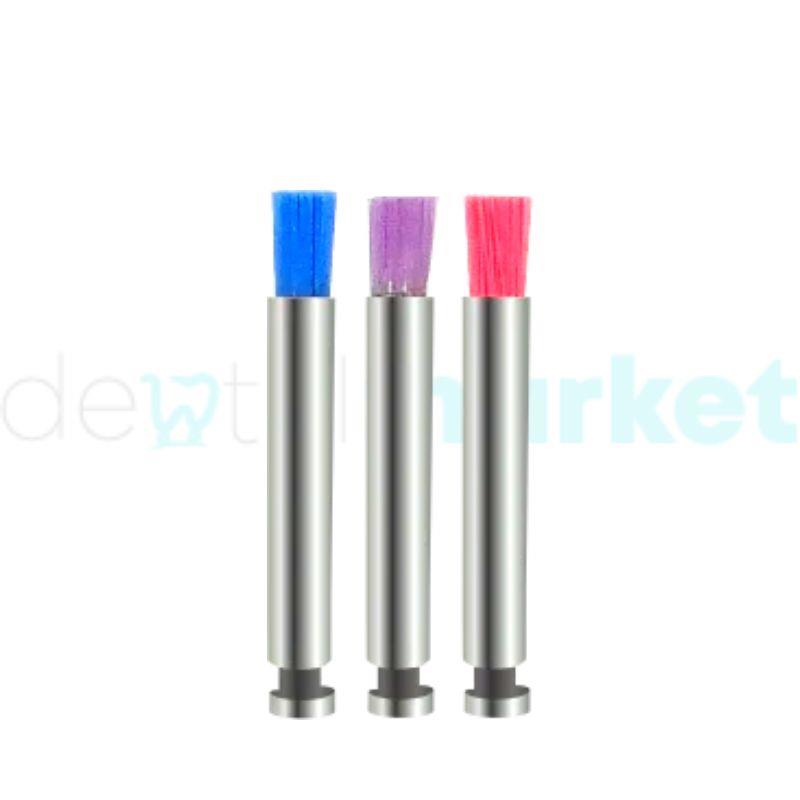 Kit Micro Escova Profilaxia KEPM.204 Fabricada na Inglaterra, a Escova Ceptiom Profilática, possui alta eficiência na remoção de manchas causadas por nicotina, chimarrão, chá, café, vinho tinto. Também usada para limpeza de cavidades, término de preparos e polimentos de resina foto. Menor tempo clínico, alta durabilidade, menor aquecimento. Azul: Grossa Roxa: Média Rosa: Macia Recomenda-se uso de pasta profilática.