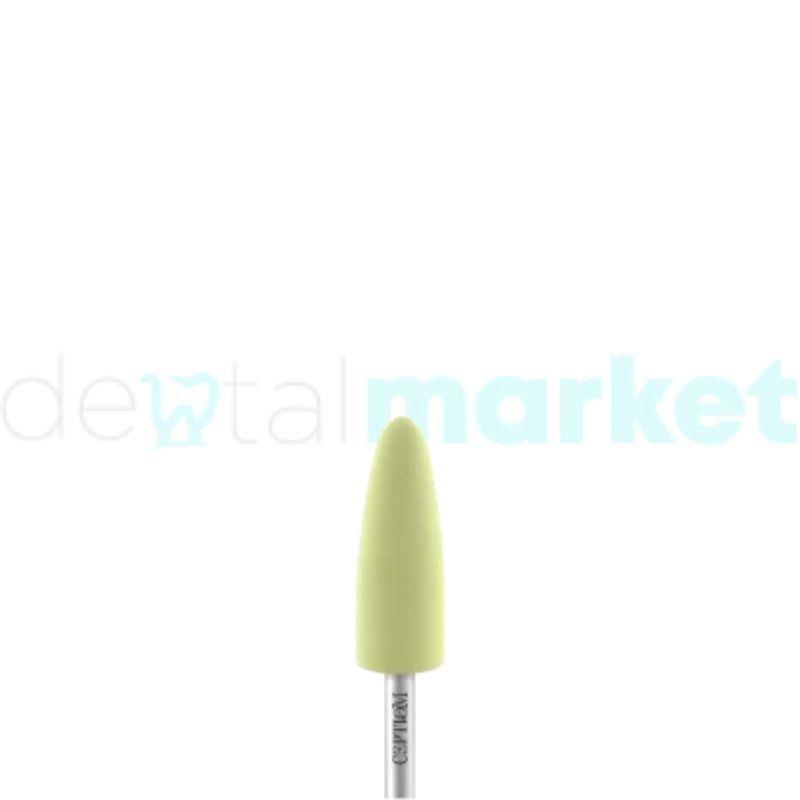 Polidor Acrílico Cônico Peça Reta Unidade 08mm Glaze PA10.104.008F Indicado para nivelamento de acrílico. 1° Fase: Verde – Remove os riscos deixados pela fresa; 2° Fase: Cinza – Abre o brilho 3° Fase: Amarela – Brilho final
