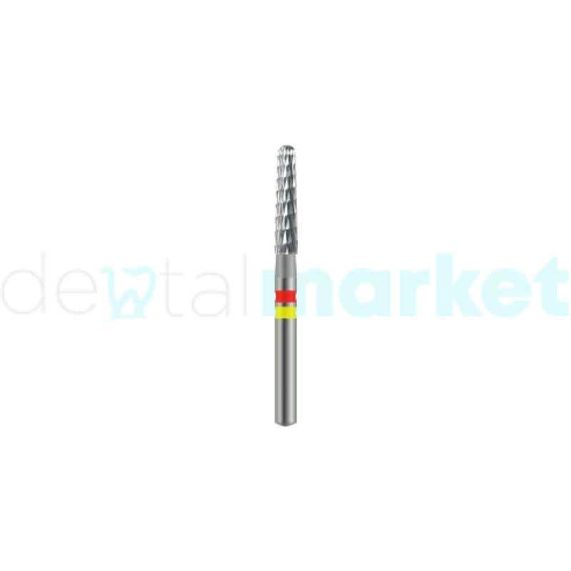 Broca Multilaminada 12 Lâminas Alta Rotação Double Speed M10DP.314.018 - 151 Fabricação Alemã, com a garantia do melhor tratamento em Carboneto de Tungstênio em nível mundial. Excelência ao juntar haste e ponta ativa, diminuindo consideravelmente as probabilidades de fraturas recoces. Inoxidável e ultra resistente. Tarja Vermelha: 12 Lâminas. Acabamento ou refinamento fino de Preparos, resinas, metais e remoção de resinas ortodônticas. Tarja Amarela: 24 Lâminas. Acabamento ou refinamento ultra – fino de Preparos, resinas, metais e remoção de resinas ortodônticas. Para Canetas Redutoras e Multiplicadoras DOUBLE SIDE Tarja Vermelha/Roxa: 12 Lâminas. Acabamento/refinamento fino e ultra-fino de Preparos,resinas, metais e remoção de resinas ortodônticas em uma mesma broca. Graças ao seu potencial de preparo BIDIRECIONAL. Direção de rotação convencional: Acabamento fino. Direção de rotação inversa: Acabamento ultra – fino. DOUBLE SPEED Tarja Vermelha/Amarela: 12 Lâminas. Acabamento/refinamento fino/retentivo de Preparos,resinas, metais em uma mesma broca. Graças ao seu potencial de preparo em: Em alta rotação: Acabamento fino, deixando o preparo liso para moldagem. Em baixa rotação: Acabamento retentivo. Indicada na fase de cimentação, possibilitando assim o uso da mesma broca utilizada para moldagem, para que sejam preservadas as características iniciais do preparo. CORTE GROSSO Tarja Preta 12 Lâminas serrilhadas, para preparos em metal e esmalte. Substitui a ponta diamantada. Alto poder de corte e baixo aquecimento. Menor tempo clínico.