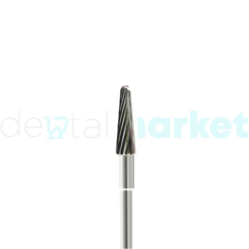 Fresa em Tungstênio de Corte Médio Tarja Cinza H10.104.040L Indicada para ligas de metais preciosos e não preciosos, acrílicos. Regularização de rebordo ósseo. Rotação recomendada: 15.000 RPM