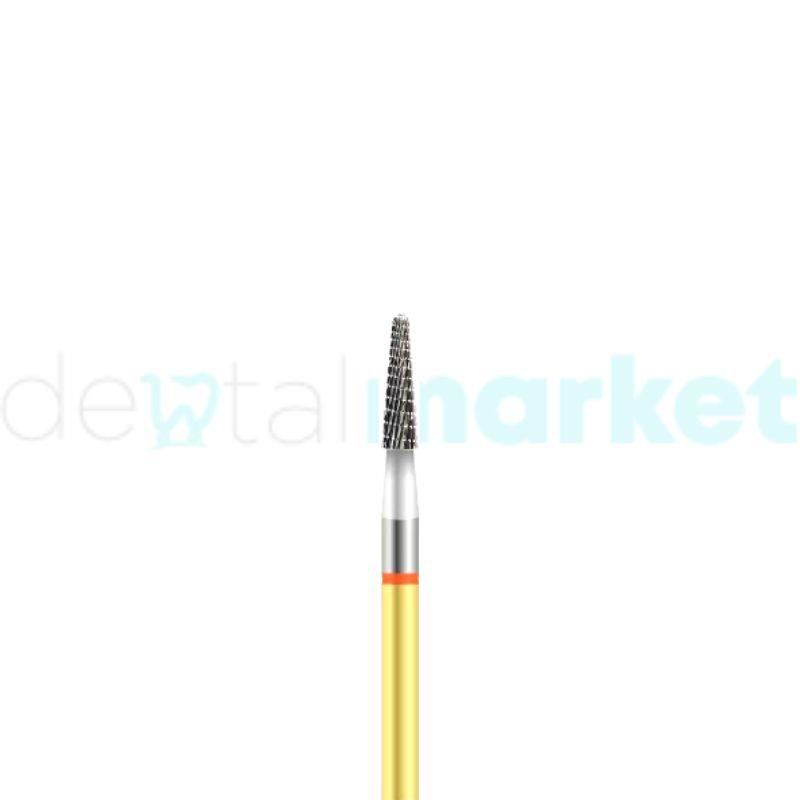 Fresa em Tungstênio de Corte Médio/Fino - Tarja Laranja H10C.104.023TF Indicada para ligas de metais preciosos e não preciosos, acrílicos, regularização de rebordo ósseo. Rotação recomendada: 15.000 RPM.