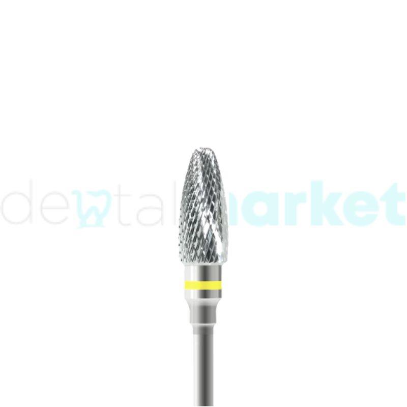 Fresa em Tungstênio de Corte Super-Fino Tarja Amarela H40.104.060SF Indicada para ligas de metais preciosos e não preciosos, acrílicos, regularização de rebordo ósseo. Rotação recomendada: 15.000 RPM.