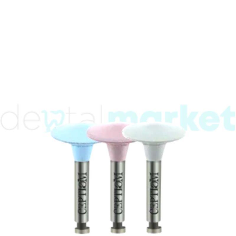 Kit Polidor Diamantado Foto'Cep Contra Ângulo com 3 Fases Lentilha KPDF70.204 Fabricação Alemã, impregnados com grãos de diamante natural, proporcionando desgastes, ajustes e polimentos com menor geração de calor, trepidação e alta qualidade de brilho. Dispensa o uso de pontas diamantadas e novas queimas de glaze. Extremamente resistentes. Foto’Cepti Polidores diamantados indicado para resinas fotopolimerizáveis. Excelente durabilidade e qualidade de brilho. Ideal para resinas nanoparticuladas. G Corte Grosso – Ajuste M Corte Médio – Remove riscos e abre brilho F Corte Fino – Glaze Zirkon’Fast Linha de Polidores com a maior concentração de grânulos de diamante natural disponível no mercado mundial. Fabricado originalmente para desgaste e brilho em zircônia, a família Zirkon’Fast é altamente resistente e abrasiva em sua fase de ajuste, tornando-se a linha de abrasivos como menor índice de aquecimento também em dissilicato de lítio (E-max) e demais cerâmicas. Sua incrível durabilidade segurança e alto poder de brilho, coloca a Zirkon’Fast como a mais avançada linha de polidores para zircônia/cerâmica e cerâmica prensada existente atualmente no mercado. G Corte Grosso – Ajuste M Corte Médio – Remove riscos e abre brilho F Corte Fino – Glaze Cepti’Ceram Polidores diamantados indicados para dissilicato de litio e cerâmicas. Cepti’Ceram é uma linha um pouco mais macia quando comparado à Zirkon’Fast, ideal para os profissionais que buscam conforto e segurança, principalmente em ajustes em bordos cervicais. G Corte Grosso – Ajuste M Corte Médio – Remove riscos e abre brilho F Corte Fino – Glaze Rotação indicada: 5.000 a 10.000 RPM.