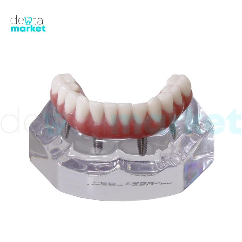Mandíbula Acrílica com Protocolo e 4 Implantes - Nacional Ossos Esta mandíbula desenvolvida em acrílico com quatro implantes hexágono externo HE (3,75/ 11), abutments, parafusos e prótese personalizada. É uma excelente ferramenta de venda e demonstração do tratamento para o paciente. Aumento expressivo do fechamento de orçamento em tratamento . O Paciente pode ver, sentir os detalhes da reabilitação oral e fixação de prótese com propriedades mecânicas semelhantes ao real de um sistema de fixação muco implanto suportado (sistema de protocolo Branemark). Explicação total de remoção e colocação para higienização, muito importante para o sucesso do tratamento. Compõe o conjunto da Mesa Clínica (9768), que permite mostrar 06 diferentes técnicas de Reabilitação Oral.