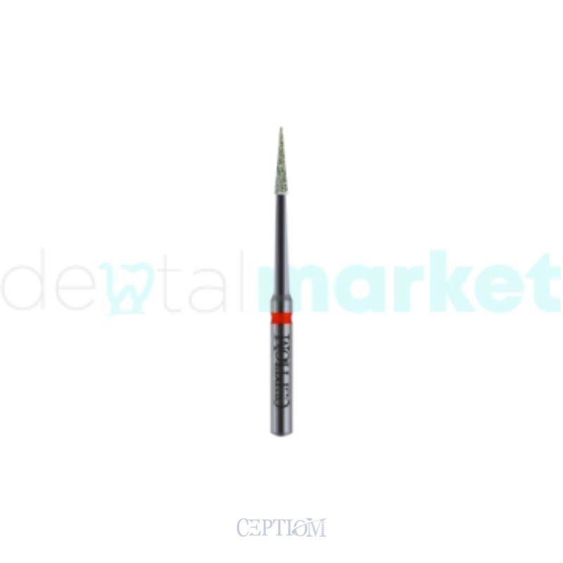 Ponta Diamantada Standard F D17CL.314.009F - PERIO SET Broca ponta diamantada CEPTIOM de tarja VERMELHA 'F' (Granulo Fino). As brocas diamantadas padrão STANDARD são fabricadas com o padrão europeu de qualidade com diamantes sintéticos de alto padrão, que garantem maior poder de corte e maior vida útil proporcionando ótimo custo benefício.