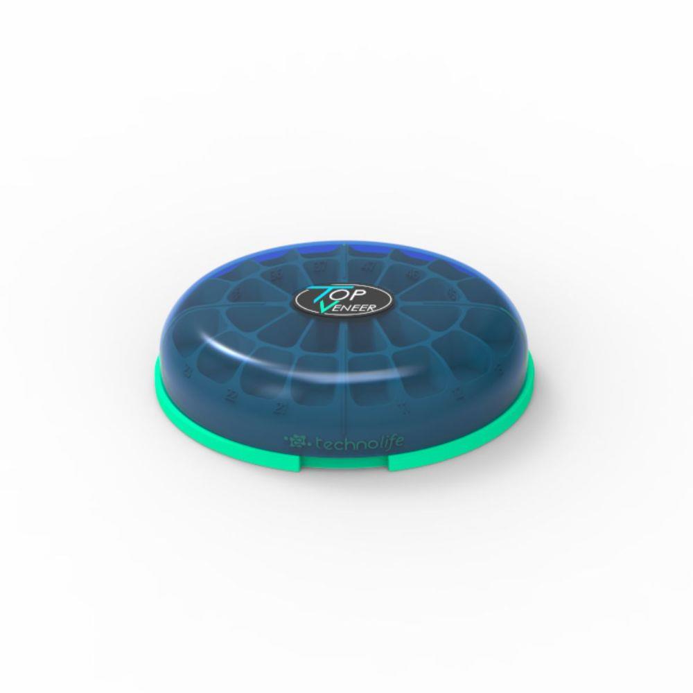 O TopVeneer é um dispositivo para organizar e armazenar facetas, possibilitando o manuseio com segurança, por meio de cavidades numeradas.