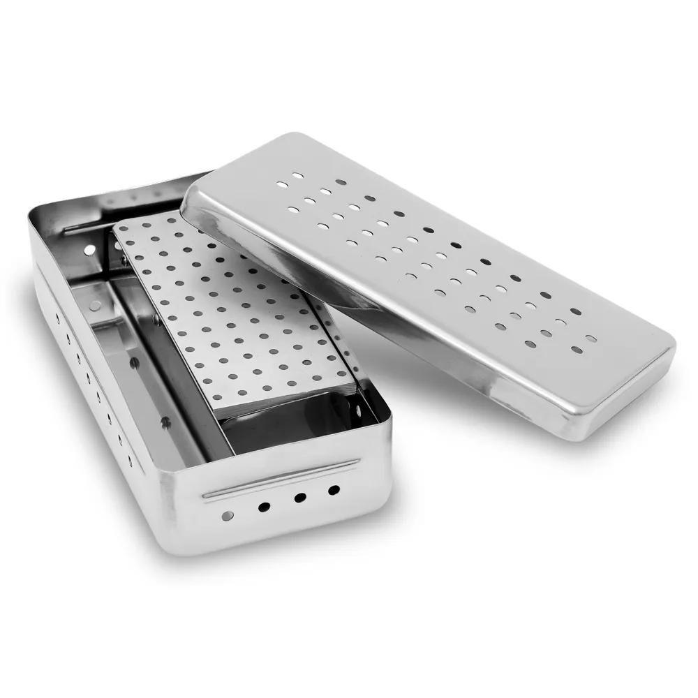 Estojo caixa retangular perfurada fabricada em aço inoxidável. Utilizado para acondicionamento e esterilização, Endo 72 Divisões.